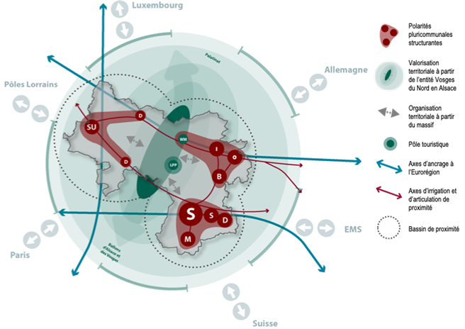 Un autre levier de la sobriété foncière est le renforcement des centralités par le principe de non création de nouvelle zones commerciales périphériques et le développement résidentiel privilégié à partir d’un maillage de pôle sur le territoire concentrant activités, commerces, services, et transports collectifs.